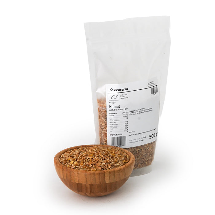 Kamut ist enthält mehr Eiweiß und höhere Anteile an zahlreichen ungesättigten Fettsäuren, Aminosäuren, Vitaminen sowie Mineralstoffen, als andere andere Weizensorten.